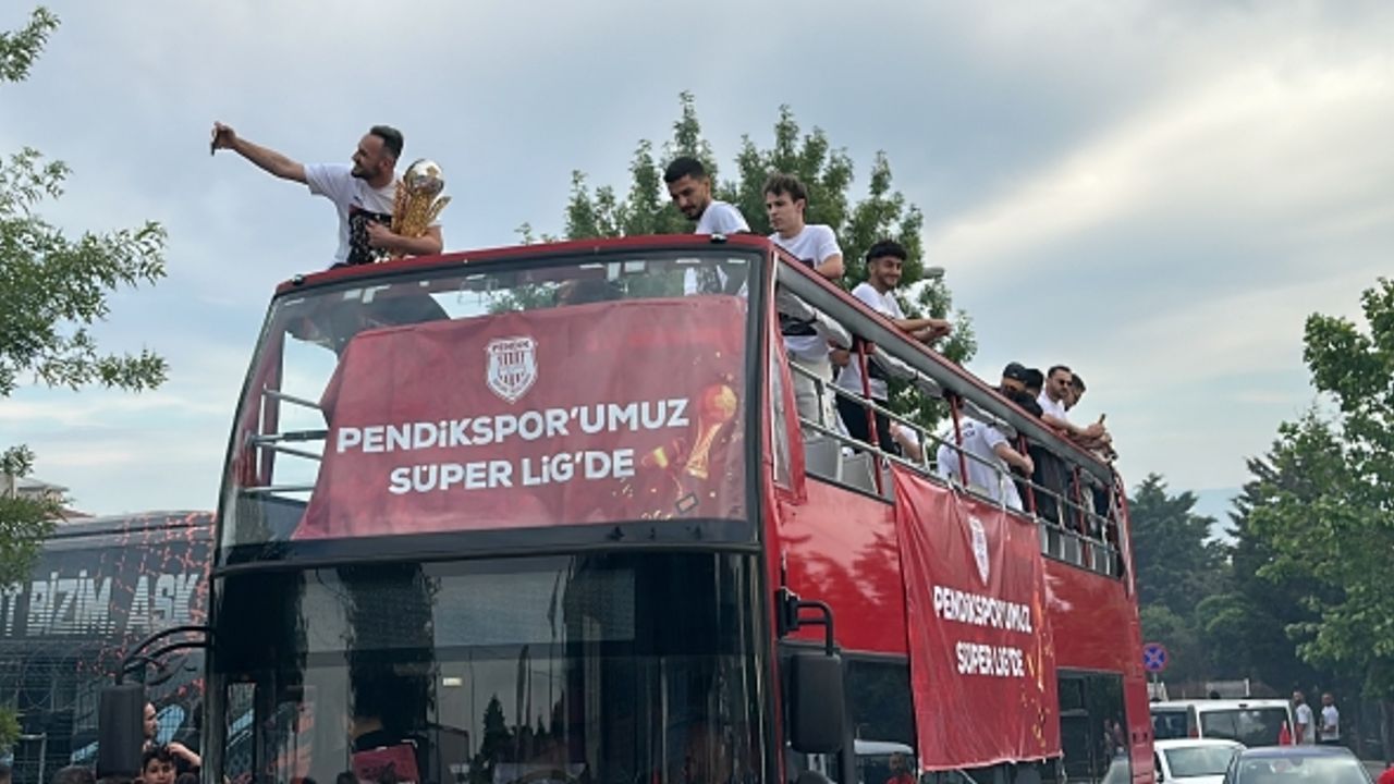 Türkiye Spor Toto 1. Lig play-off finalinde Bodrumspor'u 2-1 yenerek adını Spor Toto Süper Lig'e yazdıran Pendikspor, bu başarısını üst açık otobüste ilçede kupa turu atarak kutladı.